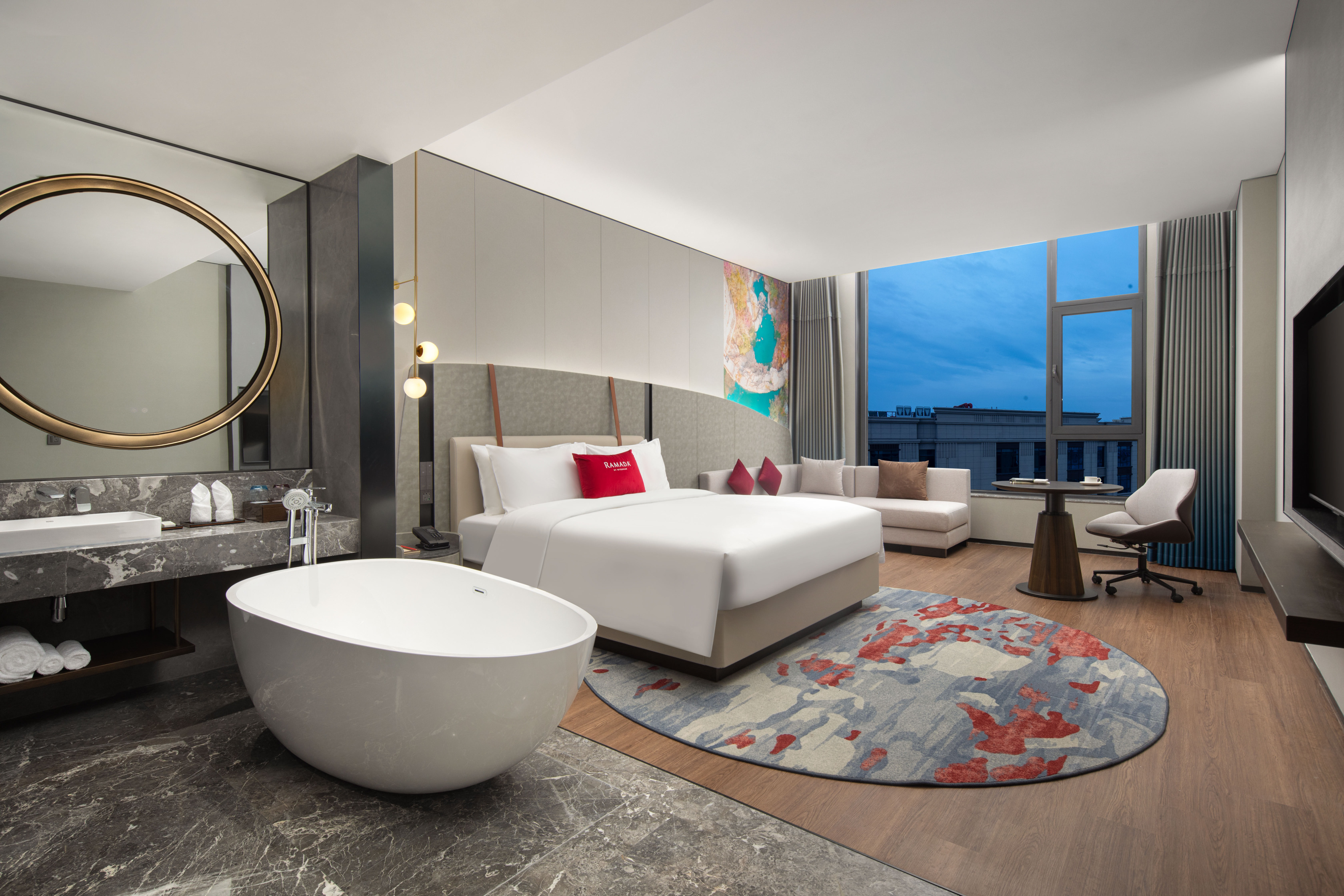 青岛胶东国际机场华美达酒店拥有豪华舒适客房及套房,设计现代时尚并兼顾商务舒适。所有床品均甄选高端品牌,客房配置现代化智能设备及三层隔音玻璃,确保了旅客舒适的入住体验。此外,客房视野宽阔,可俯瞰国际机场泊机港飞机起降的壮观景象。